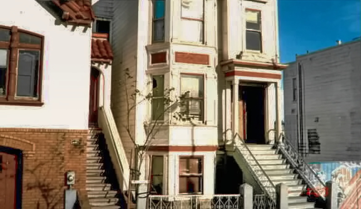 A different face to 321. This photo, a hold-over from apartments.com, was possibly from the 1990s as websites were only coming into vogue around that time. The first level bay window provides some evidence of reconstruction which matches other signs of "reconsteructive surgery" today: clues pehaps to the 1910 original structure. A broken bay window, what appears to be a boarded-up entry and a vacant lot next door speak of a part of town which was late to gentrify.
